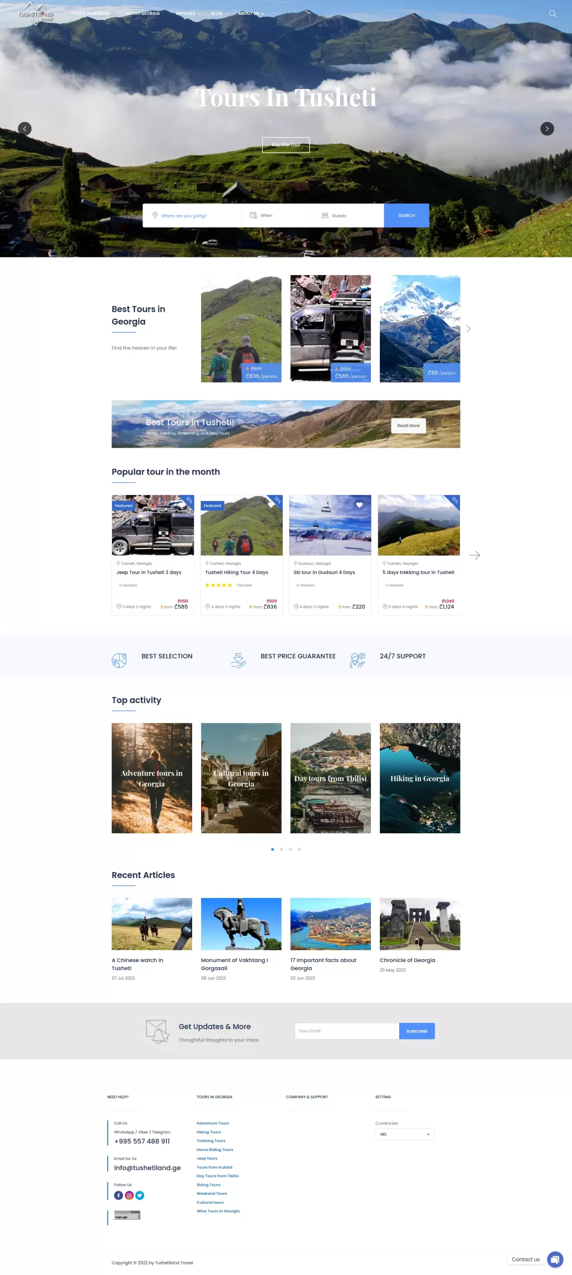 Tushetiland ვებ გვერდი ტურისტული კომპანიისთვის რომელიც ყიდის ტურებს თუშეთში და მთელს საქართველოში. კომპანია დაკავებულია შემომყვანი ტურიზმით და მისი აუდიტორია საზღვარგარეთაა, ძირითადად ევროპის ქვეყნები და გაერთიანებული არაბული ემირატები. ვებ გვერდზე არის ტურების საძიებო და ფილტრაციის სისტემა, ასევე ტურების დაჯავშნის სისტემა.